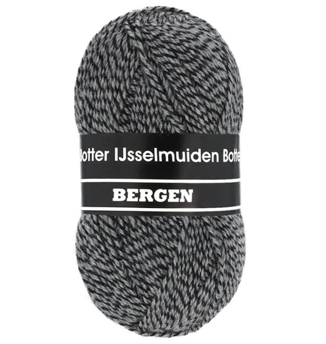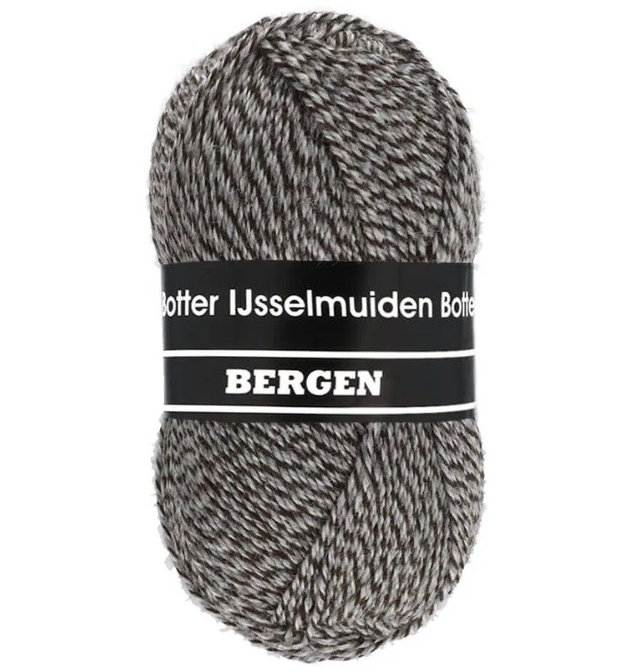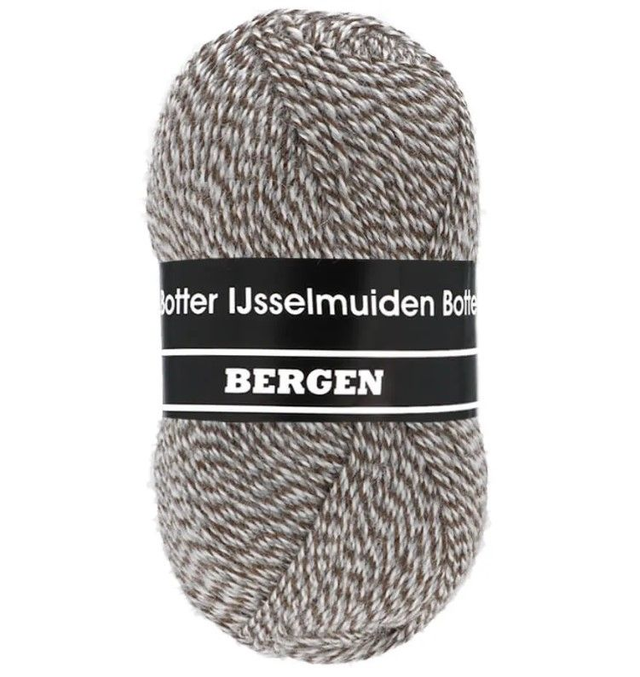 Botter Bergen är ett robust sockgarn för att sticka slitstarka och behagligt varma strumpor. Garnet är tillverkat av 20 % ull, 60 % akryl och 20 % polyamid, vilket ger en mjuk känsla och ullens andningsförmåga utan att klia. Tack vare akrylen och polyamiden är garnet lätt, starkt och lättskött. Självklart passar Botter Bergen även för att sticka eller virka tröjor, sjalar, mössor eller vantar till exempel. Finns i olika två- och trefärgade twisted nyanser och några neutrala uni-färger. Till ett par strumpor behöver du två garnnystan (upp till storlek 44 och beroende på mönstret). Tvättbar upp till 30°C.